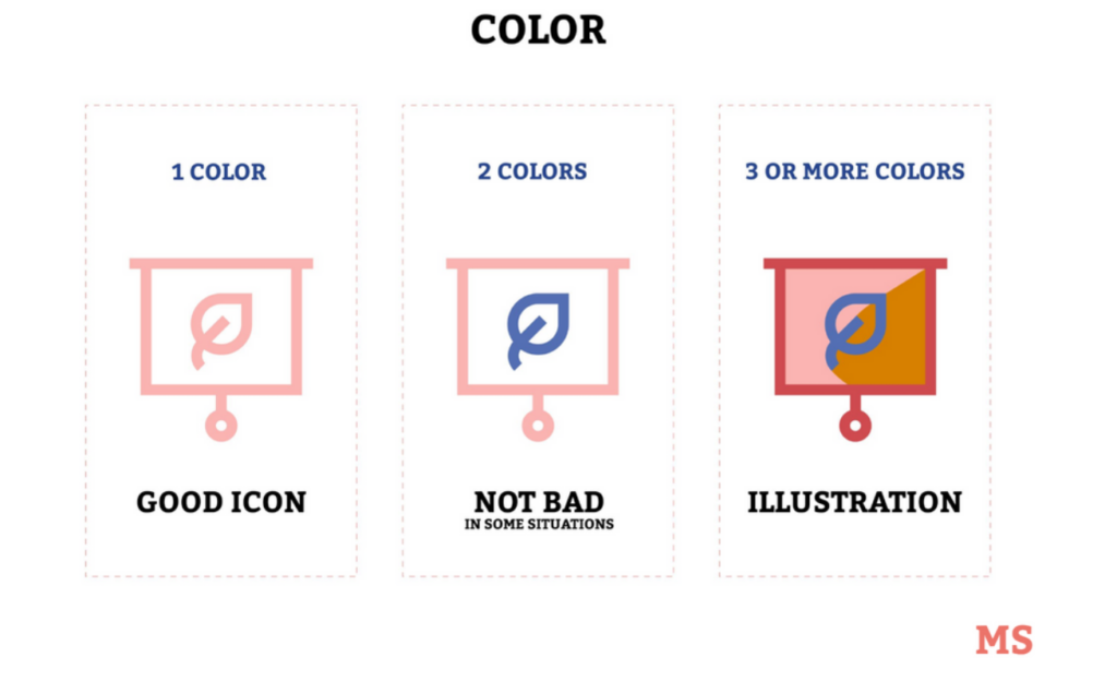 Respectez les éléments de base utilisés et ne dépassez pas ce qui est nécessaire pour qu’une série d’icônes soit bien comprise.