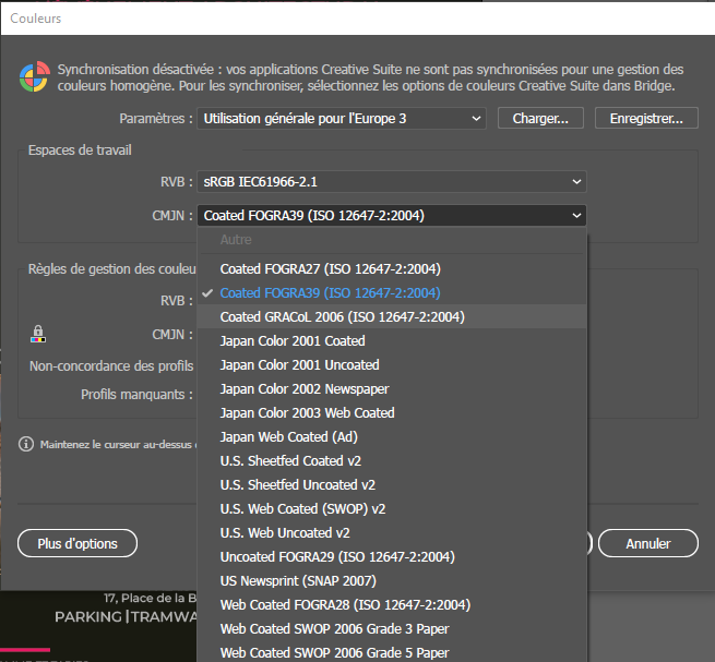 passer en CMJN et FOGRA indiqué : ici FOGRA51