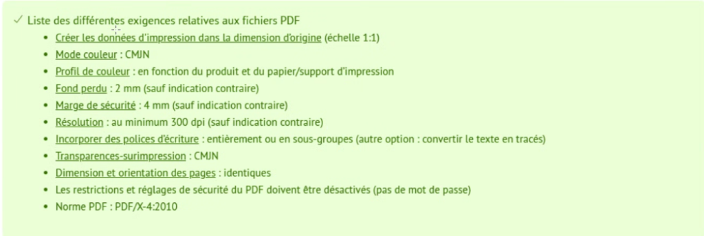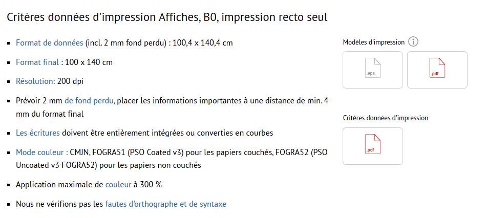 Contraintes : go sur le site de l’imprimeur ici : www.onlineprinters.fr