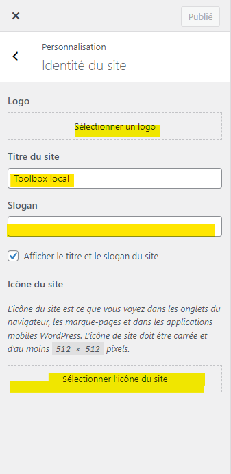 Icône du site : permet de changer l’icône du site web dans l’onglet